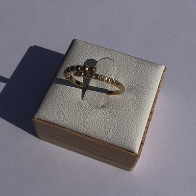 Add a touch of elegance to your ensemble with our Lila Bead Zircon Inlaid Ring. Crafted with 18k gold plating, this ring features intricate beading and sparkling zircon inlays. Elevate your style with this timeless accessory.